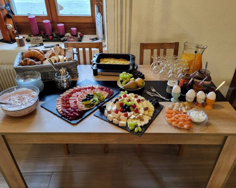 Freuen Sie sich auf unser frisches, hausgemachtes Brot und Zopf sowie unsere hausgemachte Konfitüre und Birchermüesli. Zudem erwartet Sie eine mit Liebe angerichtete Platte mit feinem Fleisch, Käse, Lachs und geräucherten Forellenfilets. Dazu servieren wir hausgemachte Rösti und das perfekte 3-Minuten-Ei. Ein wahres Fest für den Gaumen.